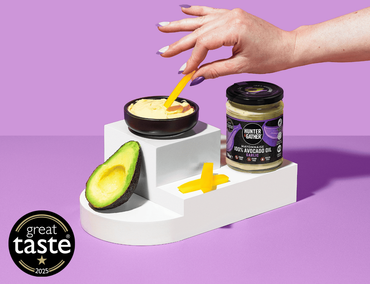 Unsere Hunter & Gather Mayonnaise wird nur mit 100 % Avocadoöl hergestellt – ohne Öl-Mischungen. Sie ist zudem zuckerfrei, kohlenhydratarm und reich an gesunden einfach ungesättigten Fettsäuren. Perfekt also für Paleo-, Keto-, Low-Carb- oder Real-Food-Lifestyle.