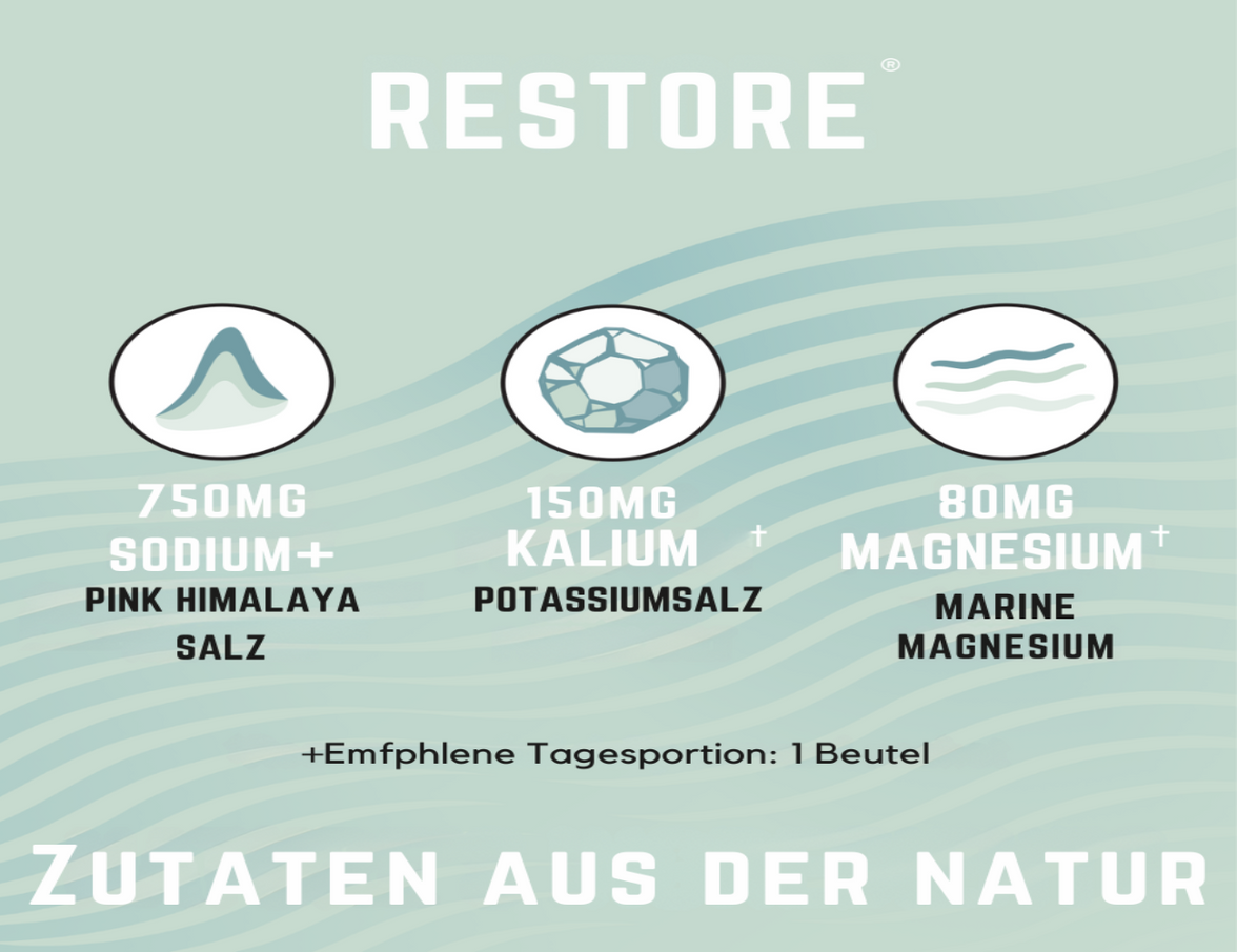 Unsere StoryJa! Insbesondere für Menschen, die sich ketogen ernähren, regelmäßig Sport treiben oder viel schwitzen (z. B. durch Saunagänge). Unsere Rezeptur bietet ein optimales Verhältnis von Natrium, Kalium und Magnesium, ganz ohne zugesetzten Zucker oder künstliche Süßstoffe. Das macht Restore zu einer gesünderen Alternative im Vergleich zu vielen herkömmlichen Getränkepulvern.