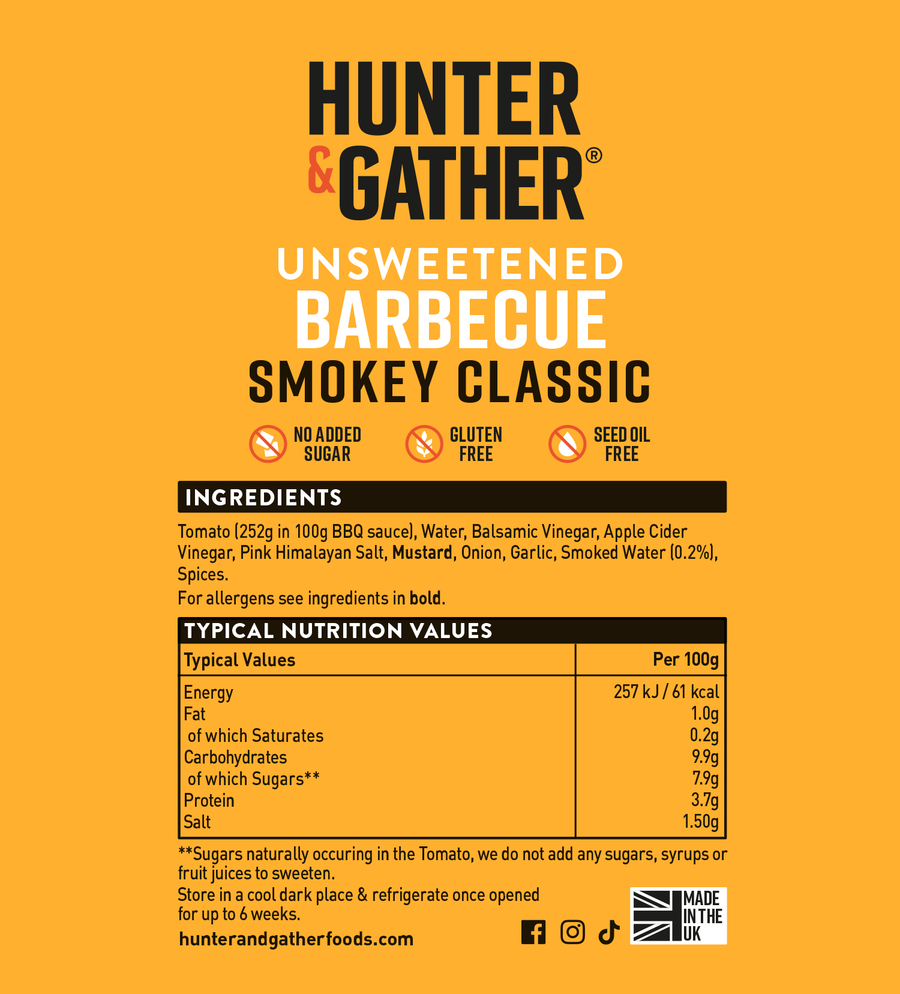 Our BBQ sauce has up to 75% less total sugars than the typical standard “big branded” BBQ sauce.