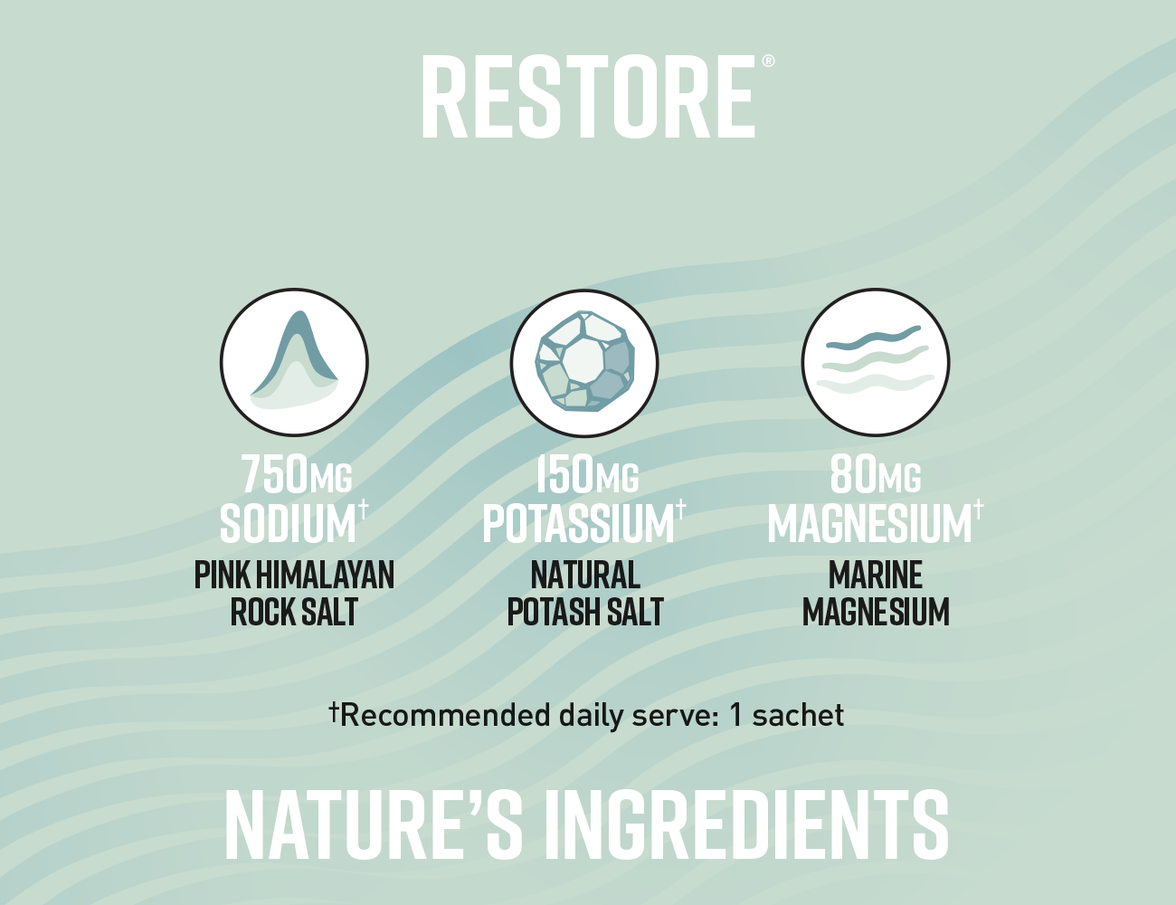 We've carefully designed Restore to include 750mg of sodium, specifically chosen to meet the varied hydration needs of our customers. Here's why this particular amount is essential for optimal health and performance: