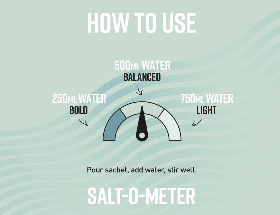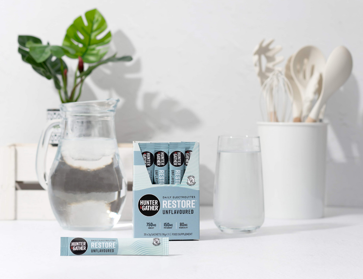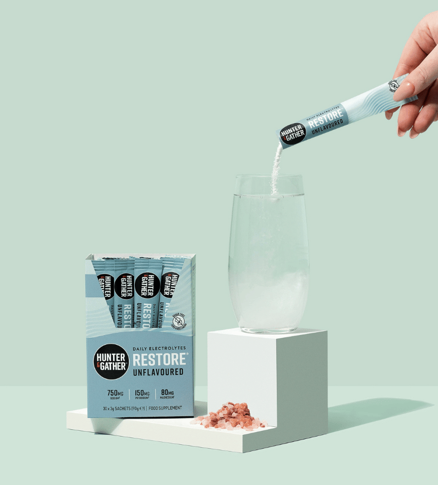 Expertly formulated with an ideal ratio of essential minerals, each sachet is your key to balanced hydration. Simply add a sachet of Restore to water (or a drink of your choice) and stir. Consult our 'Salt-o-meter' guide to find your perfect level of saltiness – from a subtle salty twist in 750ml of water to seriously salty in 250ml. Whether you're gearing up for a heavy workout, tackling a busy day at the office, or simply looking to replenish electrolytes lost during sleep, Restore is your answer to peak physical performance, mental clarity and overall well-being.