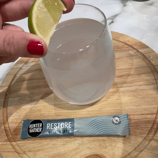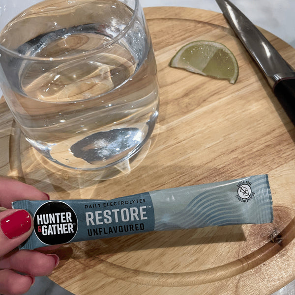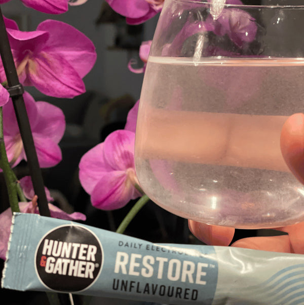 We don’t recommend using copper bottles with Restore. The natural salts and minerals in the blend can react with copper over time, potentially affecting both taste and quality. For the best experience, we suggest sticking to non-reactive materials like glass or stainless steel. Why not try it in our Hunter & Gather stainless steel bottle or simply pour it into your favourite glass tumbler at home — both will keep your electrolytes clean, fresh, and tasting just as they should.